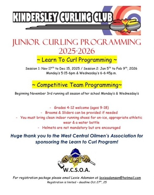 Youth instructional lessons and leagues for ages 9 – 18 (Grades 4 – 12). Curling brooms and sliders are provided if required. Please wear indoor clean running shoes and comfortable clothing.